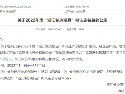 浙江省经济和信息化厅于2023年1月9日公示了2022年度“浙江制造精品”拟认定名单,米兰·(milan)股份有限公司“第五代移动警务终端P99